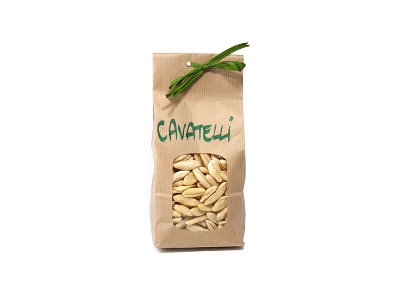 Nel nostro laboratorio produciamo pasta secca rifinita e rilavorata a mano. Si ricava da un impasto di acqua e farina di grano duro proveniente dai mulini locali.