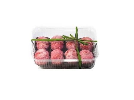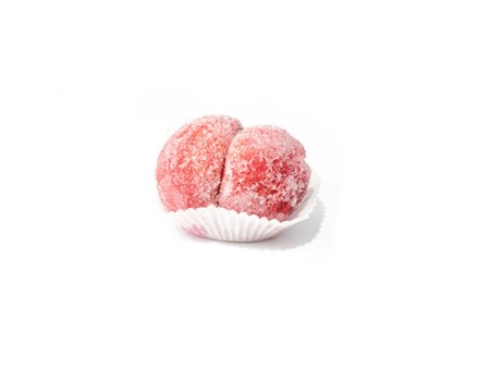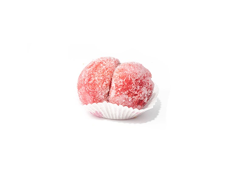 Le finte pesche hanno un corpo di morbido biscotto che racchiude un cuore di crema alla nocciola. Il tutto bagnato nell'alchermes e spolverato con dello zucchero semolato. Vendibili in confezioni da 300g
